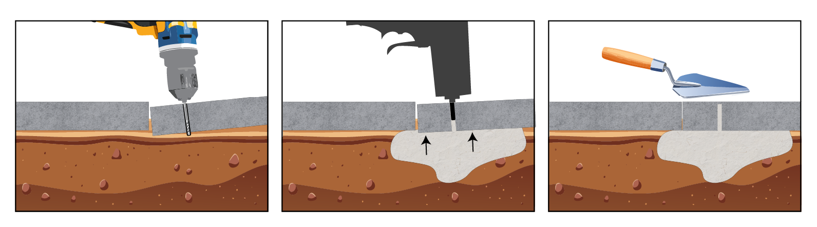 This solution allows property owners to fix uneven concrete without the mess, expense, or downtime of tearing out and replacing slabs.